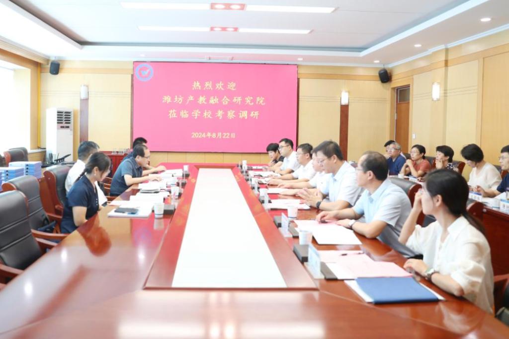 为贯彻落实《潍坊市服务现代产业学院建设办法(试行)》的通知精神,深化产教融合、校企合作,8月22日,由潍坊市现代产教融合研究院院长田元训,潍坊市产教融合研究院副院长马玉才、校企合作中心主任王丽红、教研员杜洪亮组成的潍坊市现代产业学院建设工作专班办公室专家,对我校立项的市级现代产业学院和新培育的现代产业学院进行现场考察调研,寿光市教体局党组成员、总督学张新坤,学校校务委员会成员、贾思勰农学院院长徐友信陪同考察调研。